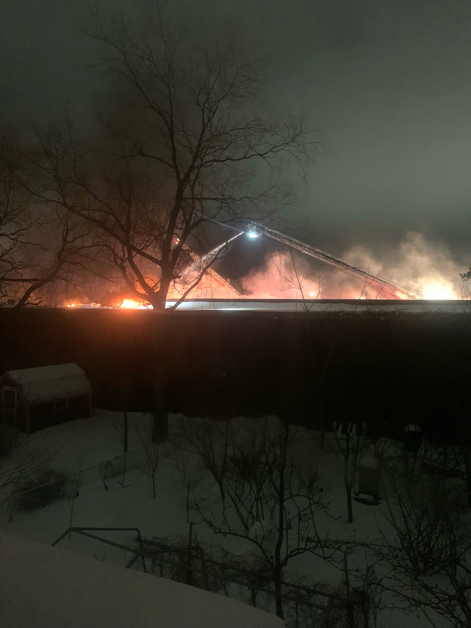 The damage to the building appears to be considerable, and video and photos taken by area residents show a substantial fire. (Video courtesy of Woodside Tavern.)