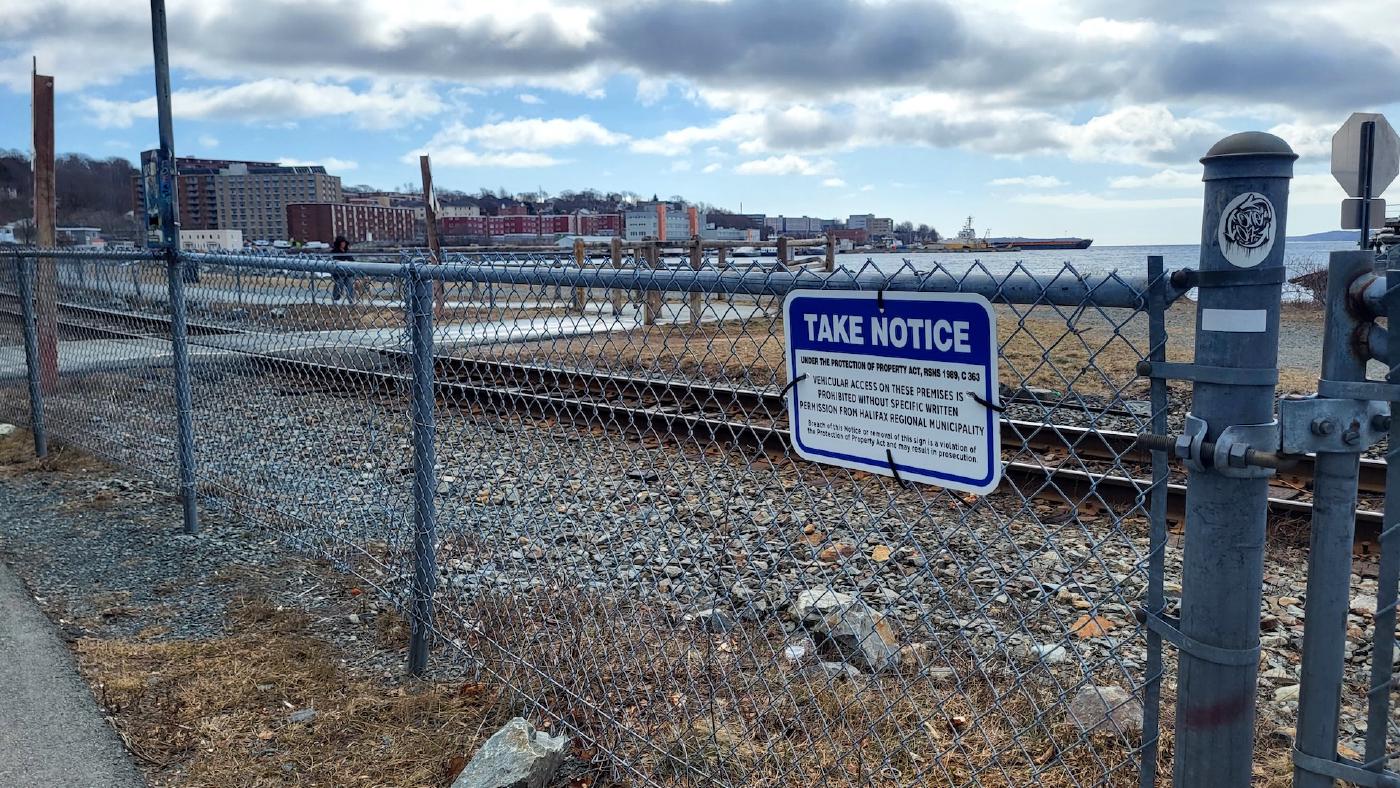 The company aiming to infill part of Dartmouth Cove has posted “No Trespassing” signs along the Dartmouth Harbourfront Trail at the cove.